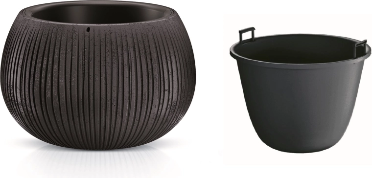 Hodí se pro pokojové rostliny, bylinky i okrasné trávy. Černé provedení s vertikálním žebrováním elegantně doplní moderní interiér i venkovní prostory. Odolnost vůči UV záření a nepřízni počasí zajistí stálý vzhled bez blednutí a praskání.