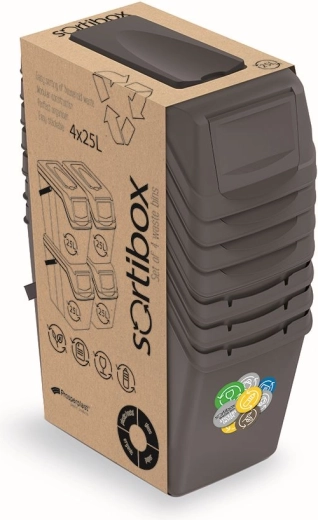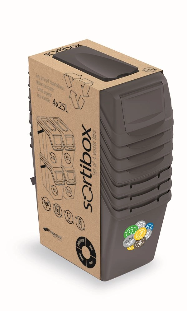 Sada 4 košů Sortibox II je ideálním řešením pro každodenní třídění odpadu. Promyšlený tvar a modulární systém umožňují koše snadno skládat na sebe nebo vedle sebe, takže dokonale využijete dostupný prostor. Nadčasové provedení v odstínu šedý kámen se hodí do moderních i klasických interiérů.