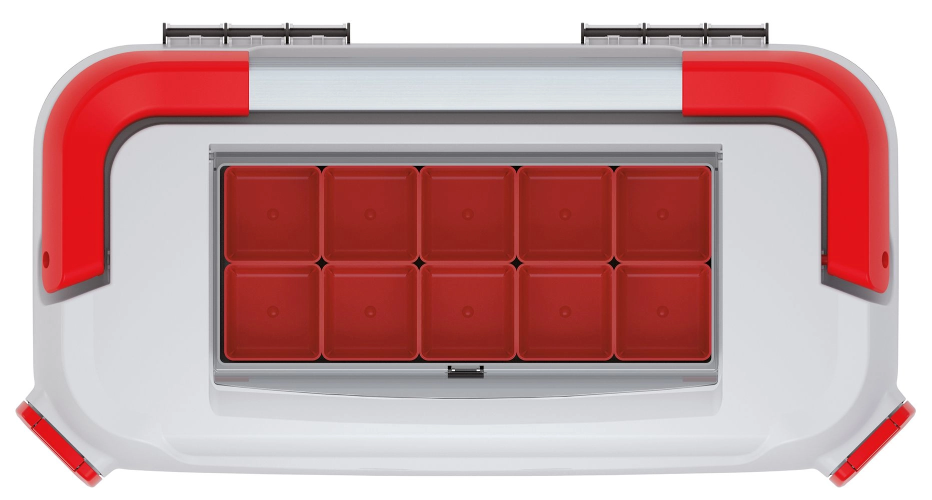 Pevné plastové tělo a spolehlivé západky chrání obsah před prachem a nečistotami během přepravy i skladování.