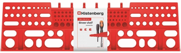 Praktický držák na nářadí pro panely BINEER o rozměrech 580 × 158 mm v červené barvě pomůže udržet vaši dílnu, garáž či technickou místnost dokonale uspořádanou. Je vyroben z odolného plastu, který zaručuje dlouhou životnost, a nabízí rychlou a snadnou instalaci i kompatibilitu s různými typy ručního nářadí.
