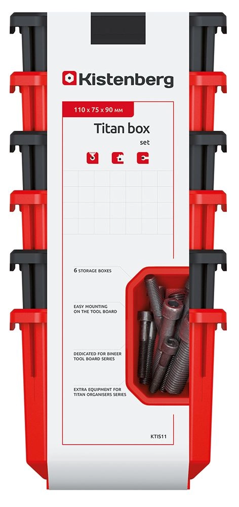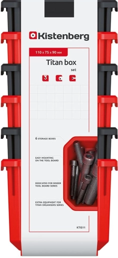 Sada 6 plastových boxů na nářadí TITAN BOX 110 × 75 × 263 mm – černá/červená