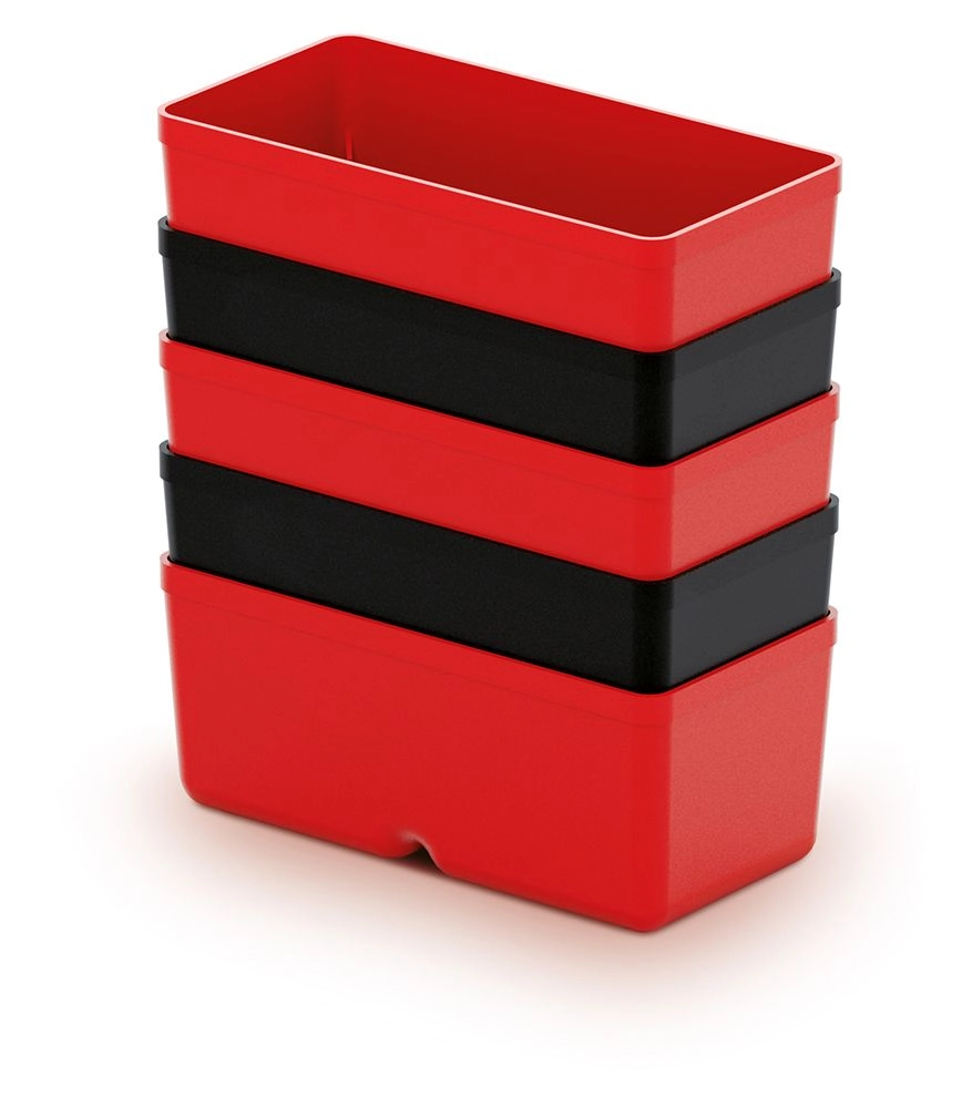 Praktická sada pěti plastových boxů Unite Box v kompaktních rozměrech 110 × 55 × 132 mm pro přehledné uložení drobného nářadí a spojovacího materiálu. Odolné provedení, snadná údržba a výrazná červená barva pro rychlou orientaci v dílně i domácnosti.