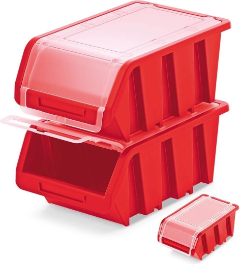 Praktický plastový úložný box s rozměry 155 × 100 × 70 mm v červené barvě je ideální pro přehledné uložení drobných součástek v dílně, garáži i skladu. Díky čirému víku máte okamžitý přehled o obsahu bez otevírání a zadní háčky umožňují upevnění na závěsný panel pro úsporu místa a rychlý přístup.