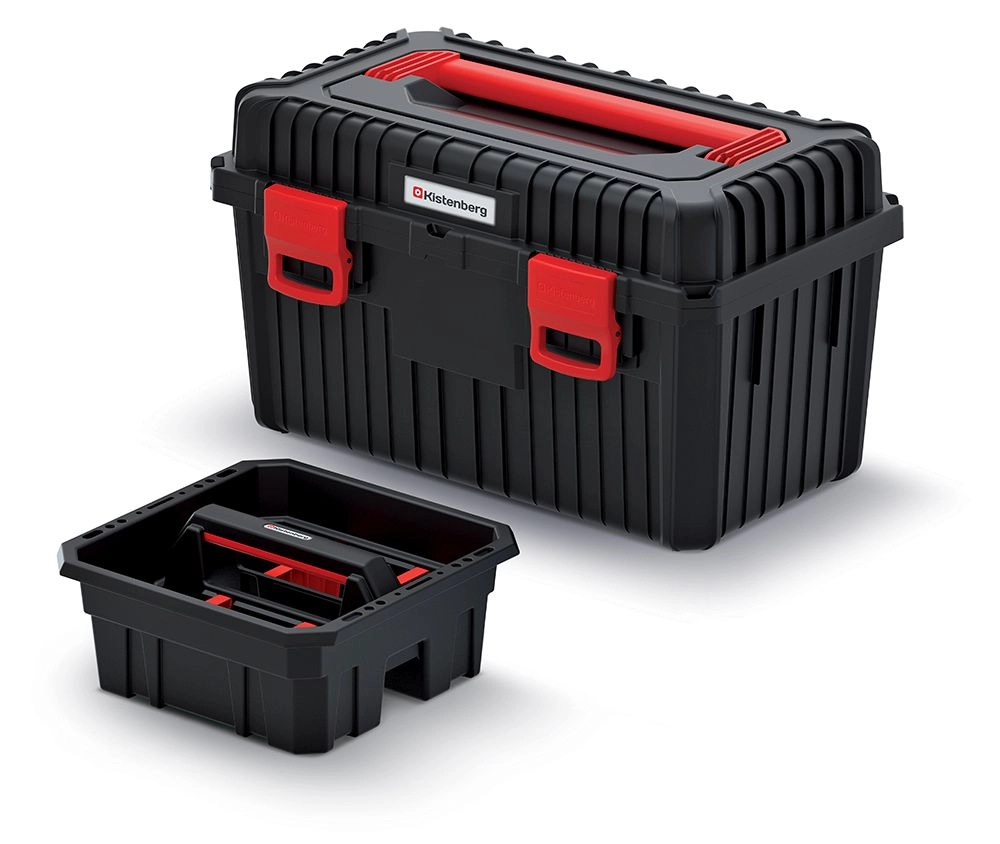 Ergonomické plastové držadlo zajišťuje pohodlné přenášení a plastové zámky udrží obsah bezpečně uzavřený během transportu. Odolné provedení v elegantní černé barvě je ideální do dílny, garáže i na montáže v terénu.