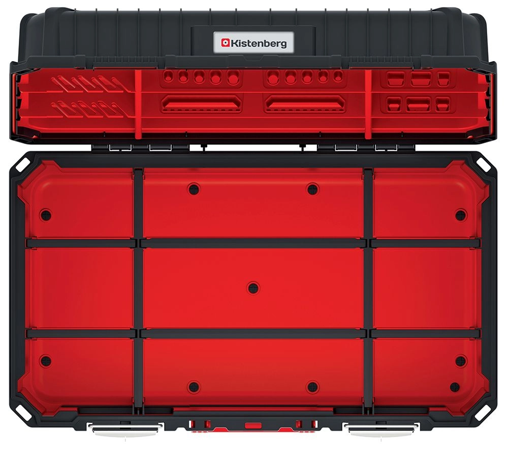 Uvnitř najdete praktičné přihrádky pro drobnosti a spotřební materiál i univerzální držáky ve víku pro rychlý přístup k často používaným nástrojům. Díky černému provedení působí profesionálně a snadno zapadne do každého pracovního prostředí.