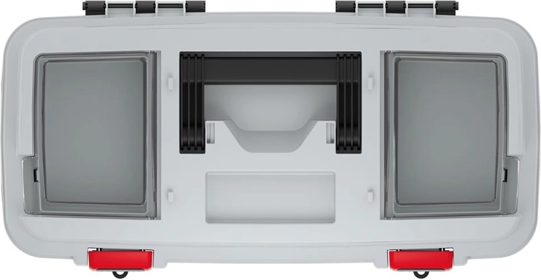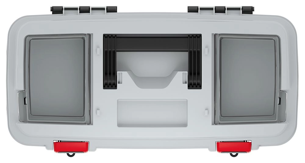 Robustní plast, vyztužené žebrování a silné západky chrání obsah při přenášení i skladování.