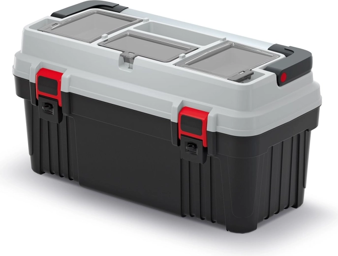 Kufr na nářadí OPTIMA v šedém provedení je navržen pro přehledné a bezpečné uložení pracovních pomůcek. Robustní konstrukce a kovové držadlo zajišťují spolehlivou manipulaci i při vyšším zatížení. Díky promyšlenému členění budete mít vše důležité vždy po ruce.
