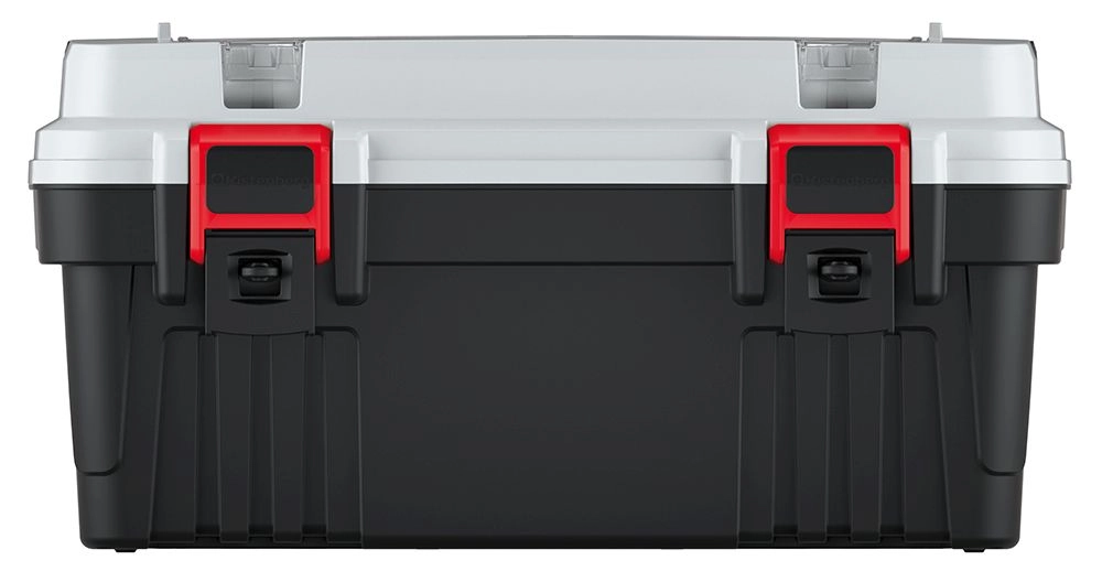 Udržte si pořádek v dílně i na montážích. Kufr OPTIMA kombinuje prostorný hlavní úložný prostor s vyjímatelným organizérem a průhlednou horní přihrádkou s krabičkami pro šroubky, hmoždinky či bity. Kovové držadlo zajišťuje pevný a pohodlný úchop, zatímco pevné západky chrání obsah při přenášení.