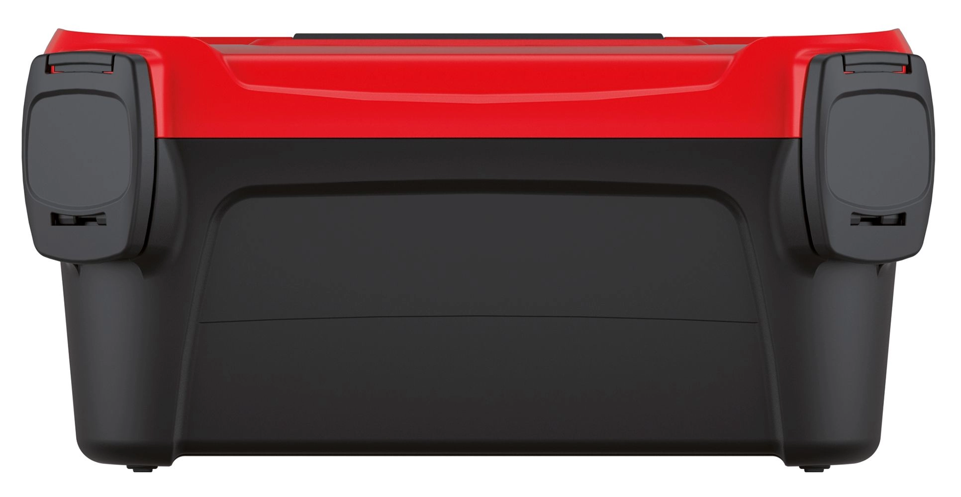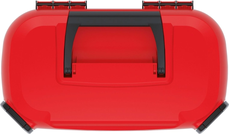Robustní boční západky pevně zajišťují víko a centrální madlo umožňuje jistý úchop a snadné přenášení.