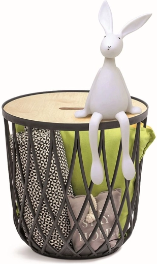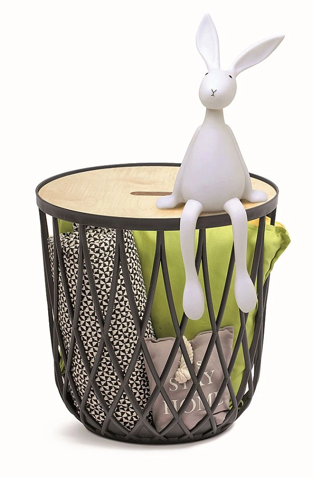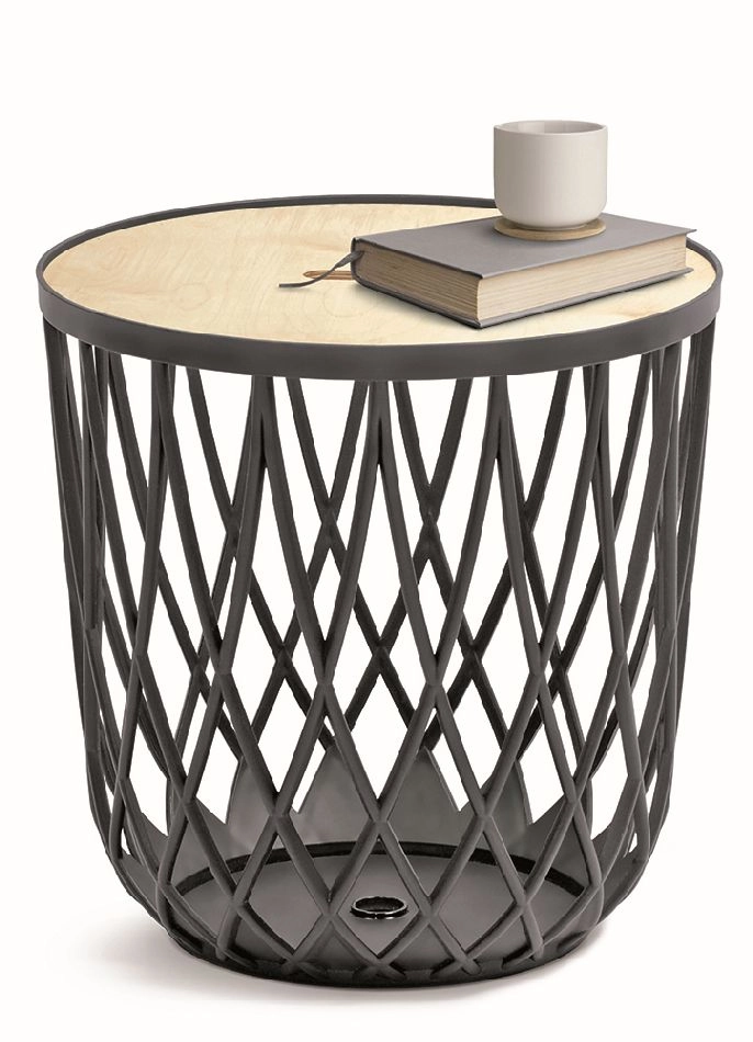 Slouží jako stylový úložný koš, designový doplněk i malý konferenční či noční stolek.