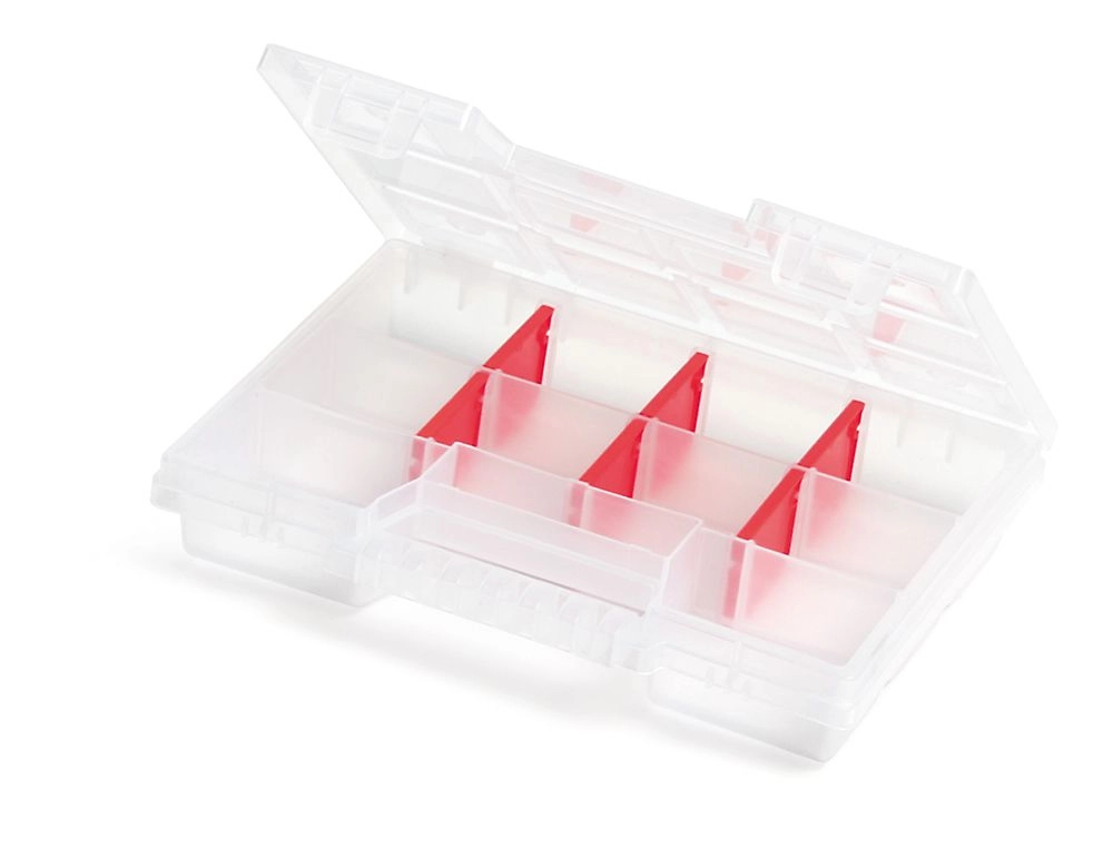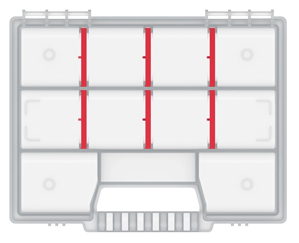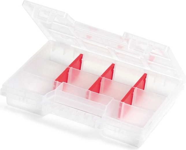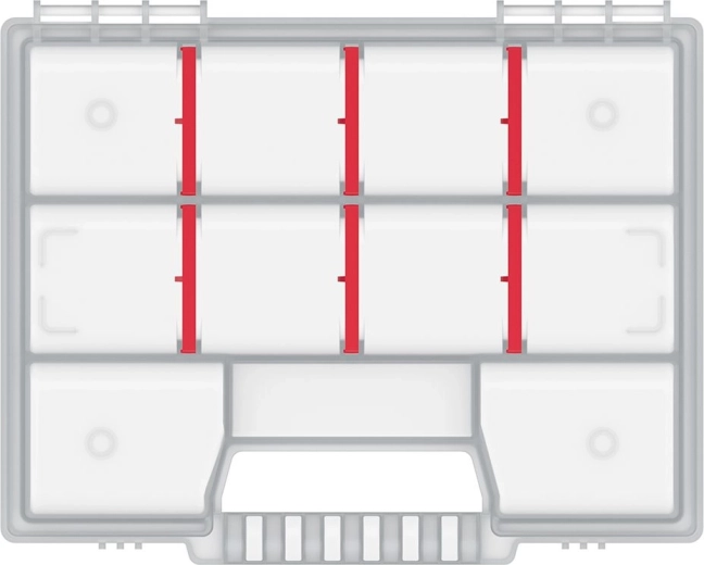 Udržujte pořádek v drobném spojovacím materiálu a součástkách s organizérem NORT. Transparentní víko poskytuje rychlý vizuální přehled, takže ihned víte, co kde máte. Díky vyjímatelným přepážkám si snadno přizpůsobíte vnitřní prostor přesně podle aktuálních potřeb.
