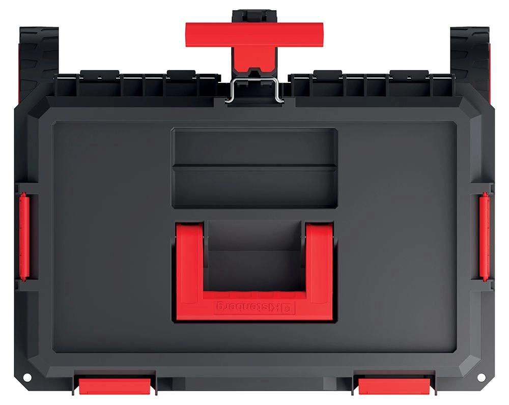 Zesílené rohy, pevné víko a jistící západky chrání obsah před nárazy a udrží nářadí bezpečně uzavřené při transportu.