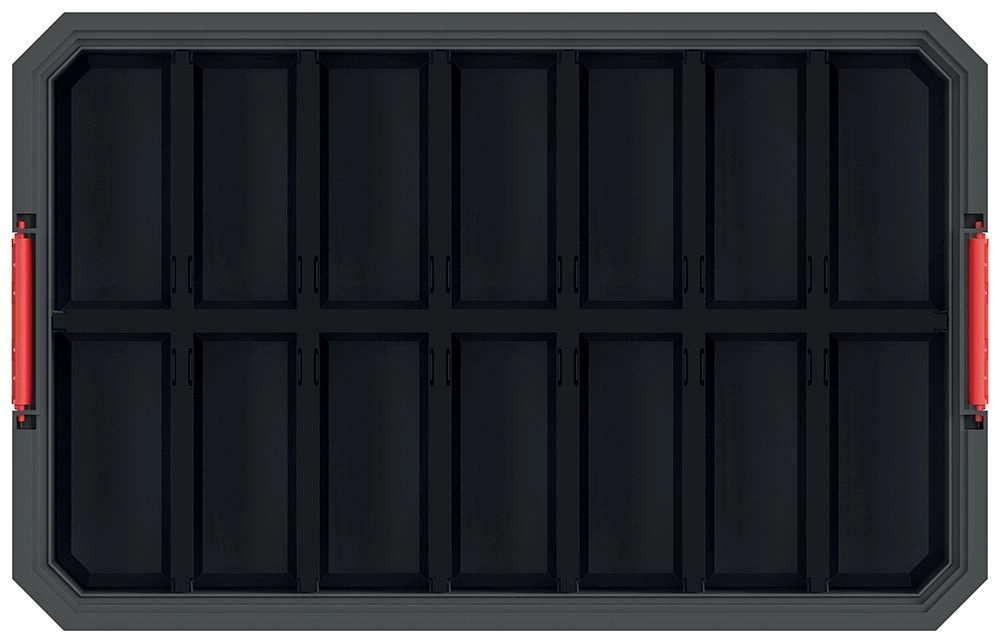 Zesílené stěny a pevné červené západky udrží obsah v bezpečí i při časté přepravě. Ideální pro nářadí a materiál v náročném provozu.