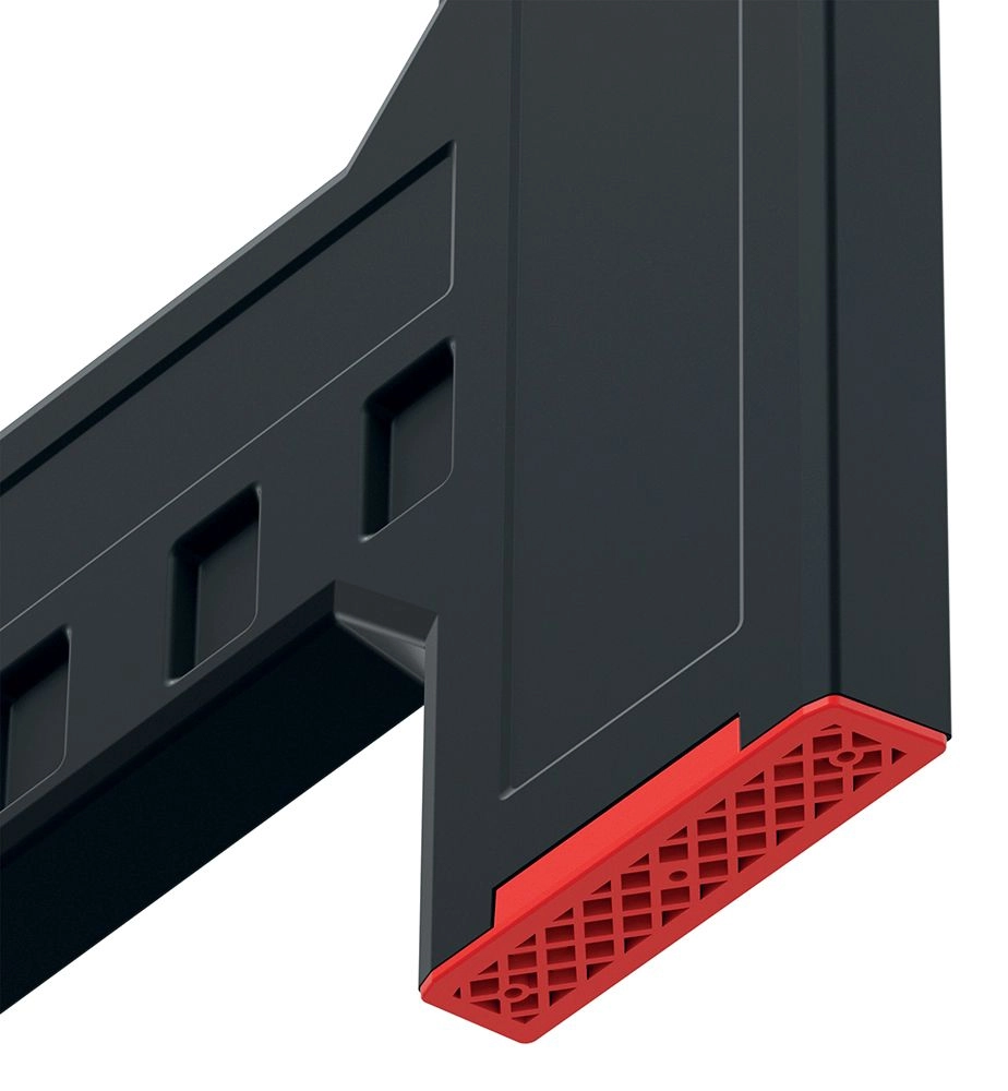 Pevná křížová výztuha a protiskluzové koncovky zajišťují stabilitu a bezpečnou práci na různých površích.