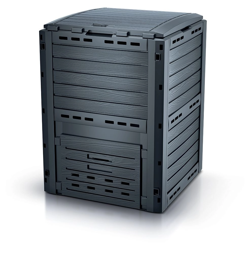Praktický zahradní kompostér s objemem 280 l v elegantní antracitové barvě pro rychlé a ekologické zpracování bioodpadu. Jeho uzavřená konstrukce brání přístupu zvířat, větrací otvory podporují správnou cirkulaci vzduchu a víko minimalizuje zápach a usnadňuje vkládání materiálu. Vyroben z odolného plastu se zvýšenou rezistencí vůči UV záření a povětrnostním vlivům, ideální i do menších zahrad či na terasy.