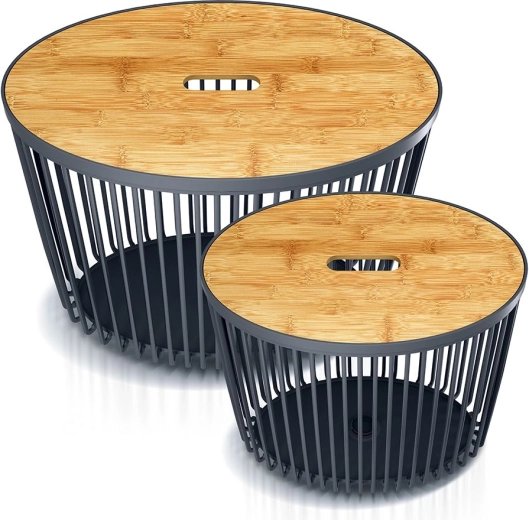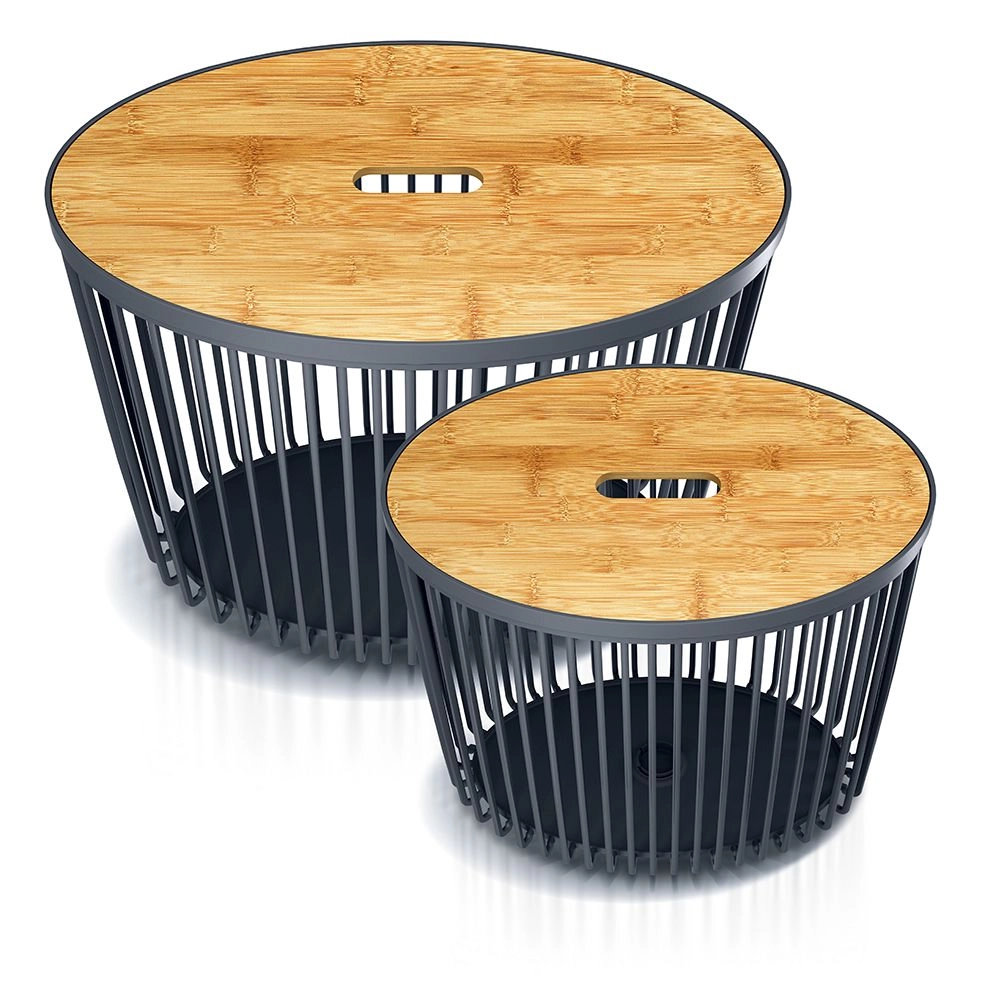 Sada košů CLUBO přináší chytré řešení pro úklid a organizaci. Díky dvěma velikostem (30 a 55 l) snadno přizpůsobíte úložný prostor aktuálním potřebám – od prádla přes přikrývky až po dětské hračky. Antracitové tělo doplňují elegantní bambusová víka, která skryjí obsah a dodají interiéru přírodní akcent.