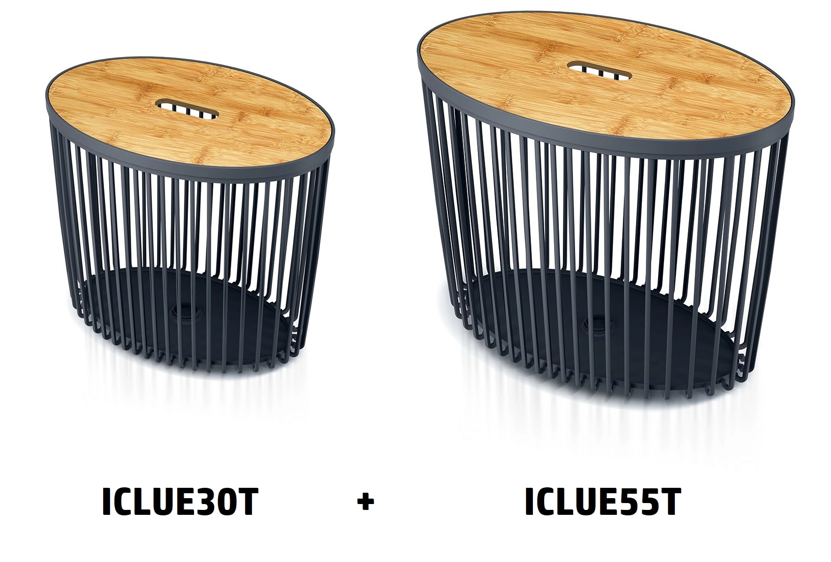 Praktická sada dvou oválných košů CLUBO o objemu 30 a 55 litrů v elegantní barvě antracit s přírodními bambusovými víky. Ideální pro třídění prádla, uložení hraček či organizaci domácnosti. Kombinuje moderní design s funkčností, snadnou údržbou a nadčasovým vzhledem. Univerzální využití, stylová kombinace bambusu a plastu a dva objemy pro maximální flexibilitu.