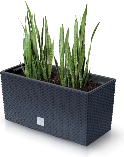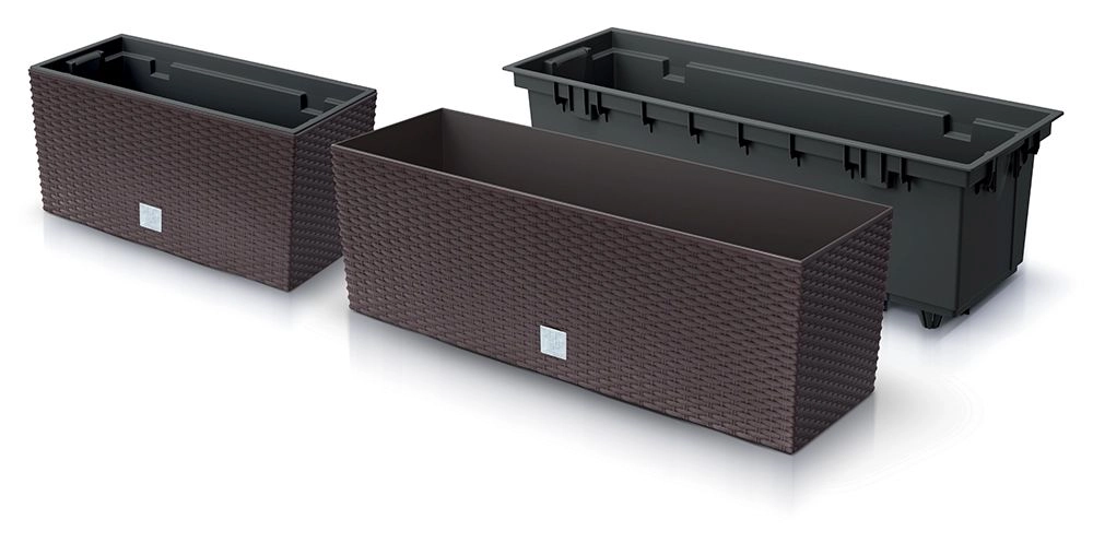 Stylový truhlík s realistickou texturou ratanu přináší přírodní vzhled a současně praktické řešení pro pěstování květin i bylinek. Díky vnitřní vložce je manipulace se substrátem rychlá a čistá, zatímco integrovaný odtokový systém s zátkou pomáhá předcházet přemokření kořenů.