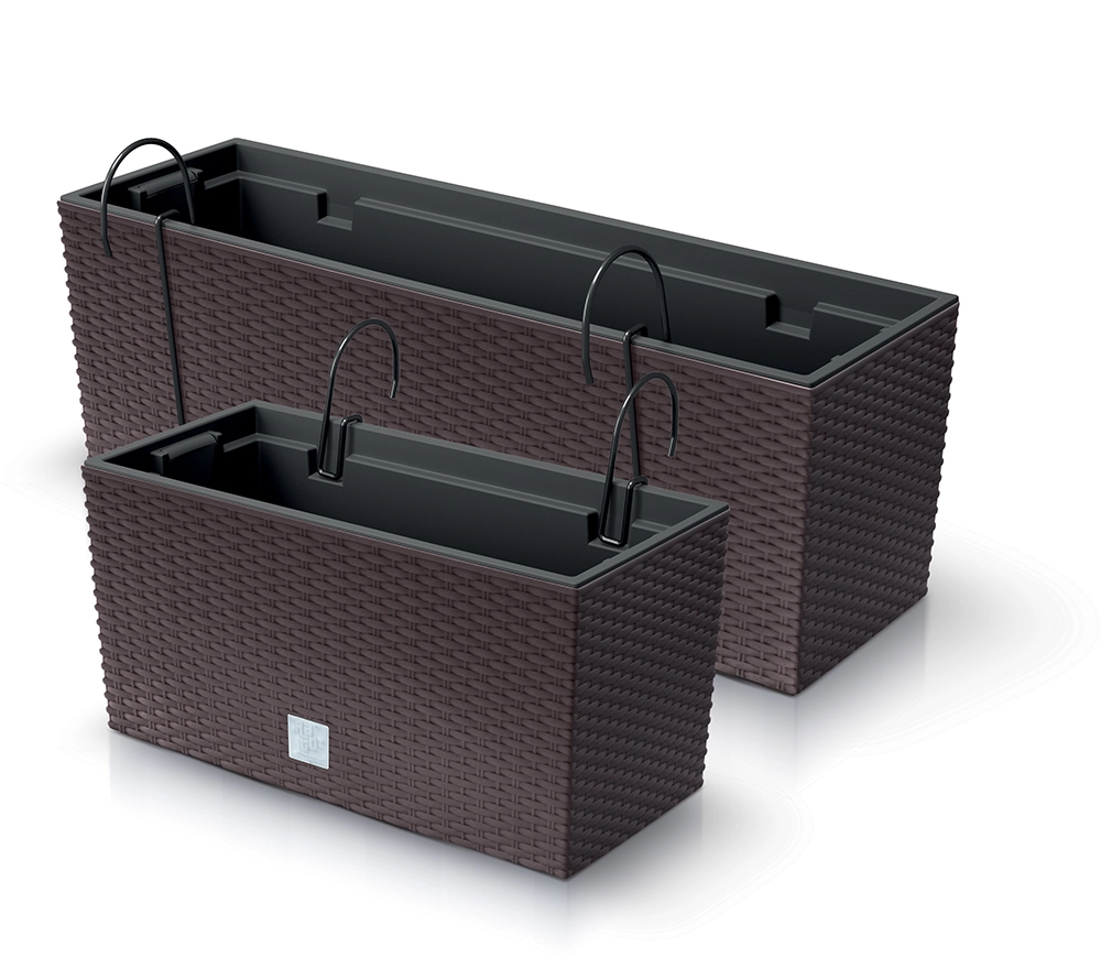 Závěsný truhlík s ratanovou texturou krásně doplní balkony, terasy i interiéry. Díky kvalitnímu plastu je lehký, stálobarevný a odolný vůči UV a povětrnostním vlivům. Součástí jsou kovové háky pro snadné zavěšení na zábradlí a vnitřní vklad pro pohodlnou výsadbu a údržbu rostlin.