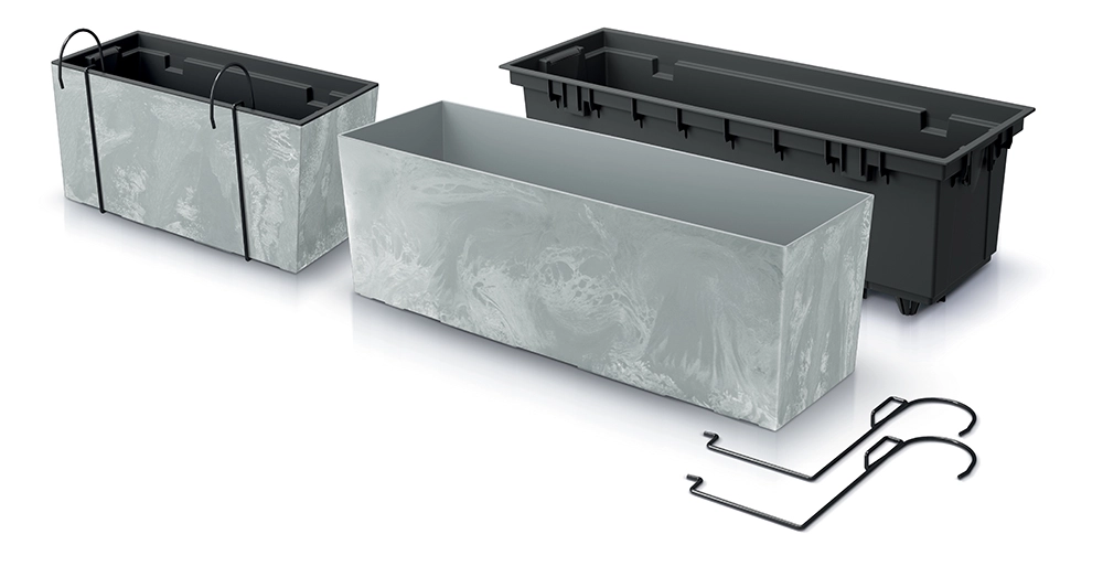 Vneste do svého domova či na balkon moderní vzhled s truhlíkem v antracitové barvě s působivým betonovým efektem. Díky kvalitnímu plastu je lehký, ale zároveň odolný vůči UV záření i povětrnostním vlivům, takže si dlouhodobě udrží barvu i tvar.