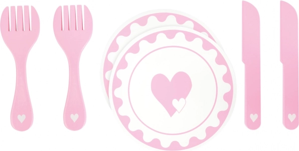 Malý dřevěný servis je dekorován srdíčky a je vyroben ze 100% certifikovaného FSC® dřeva. Děti nejen potěší krásný design, ale také se naučí něco o ekologii a udržitelnosti.