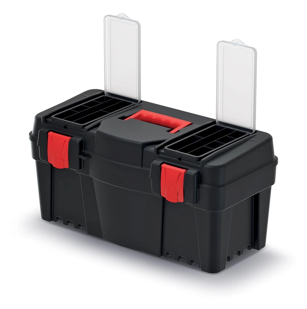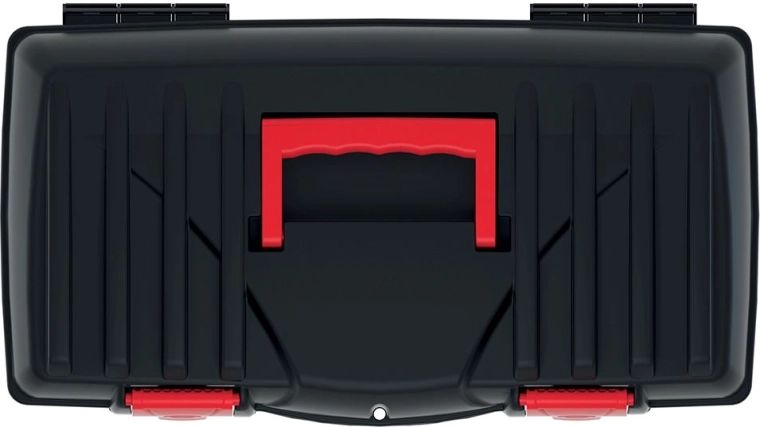 Díky ergonomické rukojeti se pohodlně nosí i při plném zatížení. Vnitřní organizér zajišťuje pořádek v drobném příslušenství, šroubcích či bitových nástavcích, a klipový mechanismus drží víko pevně uzavřené během přepravy.