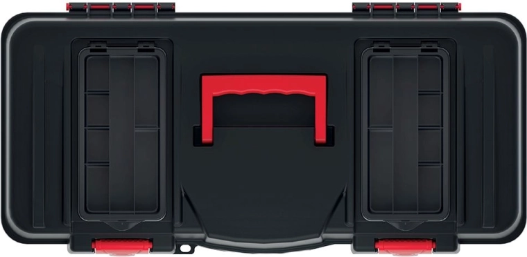 Promyšlená organizace usnadňuje práci: vyjímatelná vnitřní přihrádka zajistí rychlý přístup k často používaným nástrojům, zatímco průhledné organizéry ve víku udrží šroubky, hřebíky a malé součástky vždy po ruce. Ergonomická rukojeť a nosnost 21 kg umožňují bezpečné přenášení i těžší výbavy.