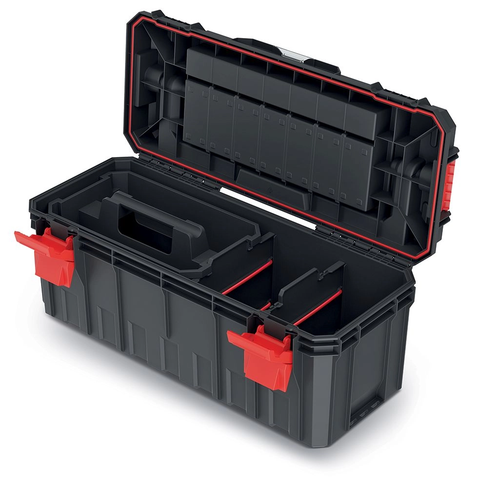 Vnitřní uspořádání s odnímatelným nosičem usnadňuje přístup k často používaným položkám a pomáhá udržet pořádek. Silné ABS přezky drží víko pevně uzavřené a kufr je plně kompatibilní s modulárním systémem X BLOCK pro snadné stohování a přepravu.
