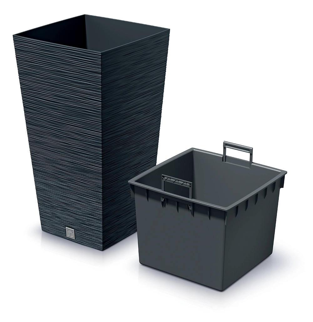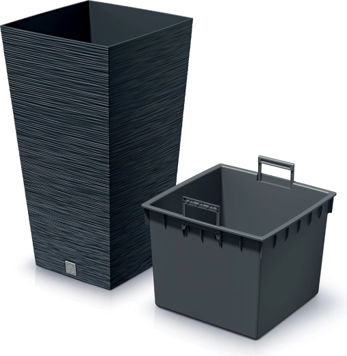 Vyšší čtvercový květináč Furu Square v antracitové barvě zaujme moderním žebrovaným vzorem a elegantním zužujícím se tvarem. Je ideální pro okrasné trávy, bylinky i menší keře. Odolný plast usnadňuje manipulaci, zároveň skvěle snáší déšť, slunce i mráz.