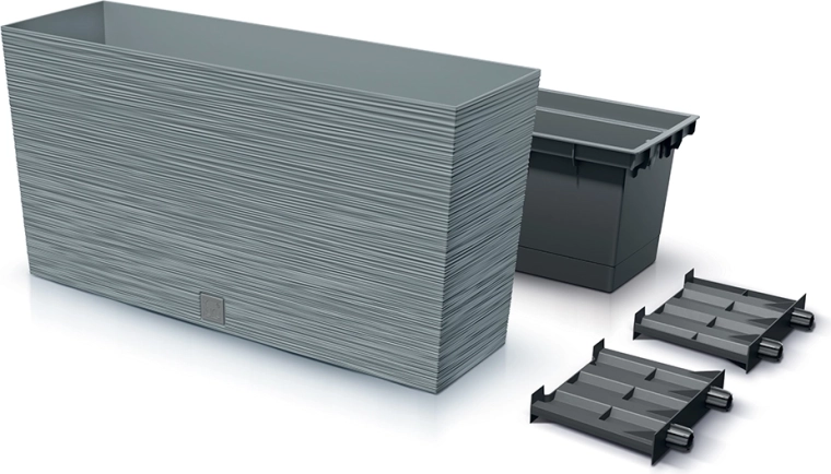 Vyjímatelná vložka zjednodušuje výsadbu, přesazování i údržbu. Zabraňuje vysypávání zeminy a usnadňuje manipulaci bez nepořádku.