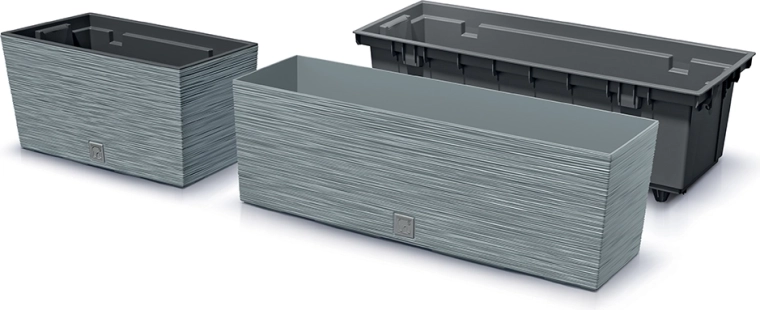 Promyšlená konstrukce s opěrnou hranou drží vložku pevně na místě a zajišťuje stabilitu. Truhlík je vhodný pro okenní římsy i zábradlí balkonů a snadno jej sladíte s dalšími květináči stejné linie pro jednotný vzhled zahrady či terasy.