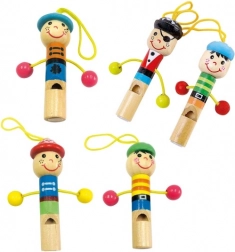Dětská dřevěná píšťalka zdobená malovanými postavičkami je nejen zábavným, ale i praktickým dárkem. Píšťalka je vyrobena z masivního dřeva a nalakována nezávadnými barvami, což zaručuje její dlouhou životnost a bezpečnost pro děti. Díky příjemnému hlasitému zvuku ji lze využít při různých aktivitách, jako je hraní fotbalu nebo pro signální účely.