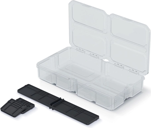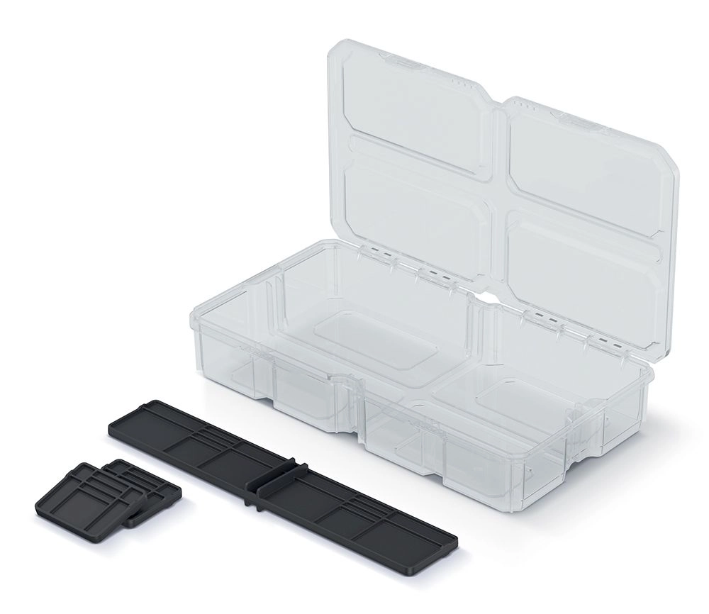 Udržte pořádek v dílně, garáži i doma s kompaktním organizérem MSX BOX. Průhledné víko poskytuje okamžitý přehled bez zbytečného otevírání, což šetří čas a zefektivňuje práci. Díky třem vyjímatelným přepážkám si snadno nastavíte vnitřní prostor přesně podle aktuálních potřeb.