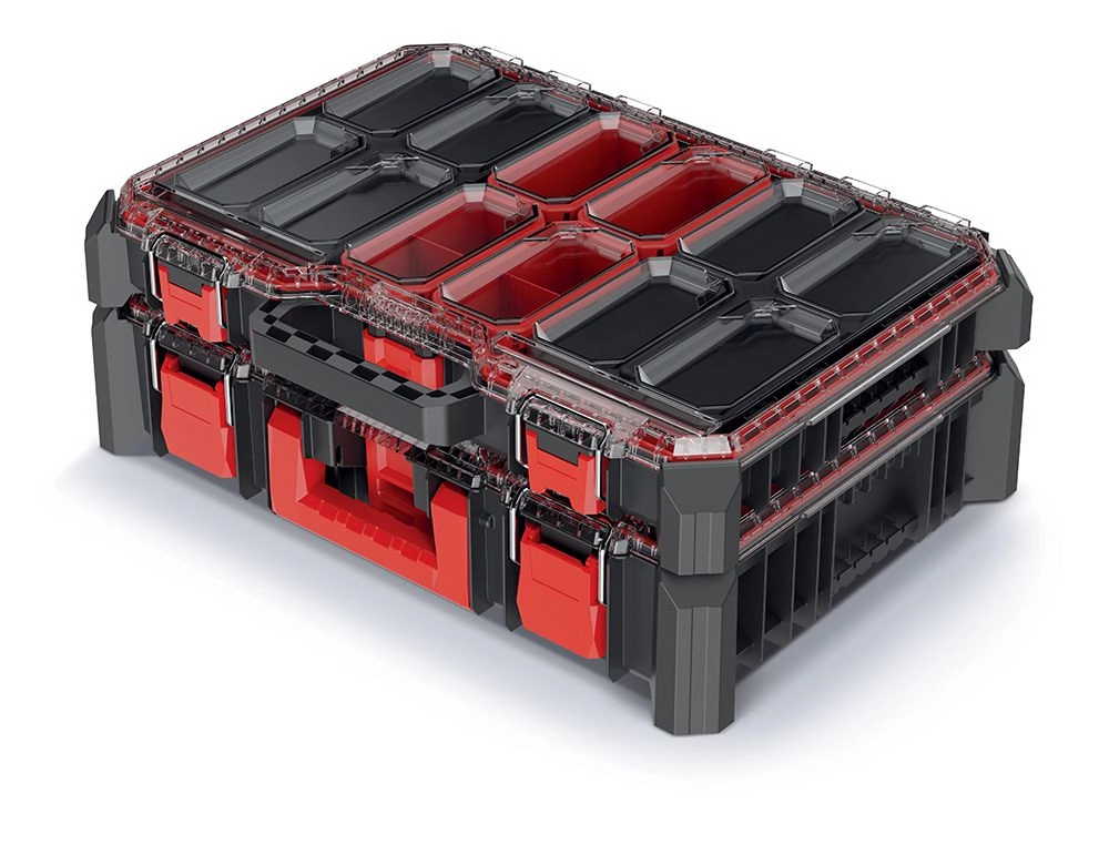 Organizéry jsou navrženy pro každodenní použití – kombinují funkční prostor pro malé součástky i robustnější díly. Praktické přepážky udrží obsah na místě, průhledné víko (pokud je součástí) umožní rychlou orientaci a pevné klipsy ochrání uložené věci při transportu.