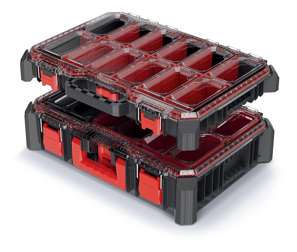 Organizéry jsou vhodné pro šroubky, hmoždinky, hřebíky, bity, vrtáky či kreativní pomůcky. Díky modulárnímu členění jednoduše přizpůsobíte vnitřní prostor aktuálním potřebám a udržíte pořádek bez námahy.