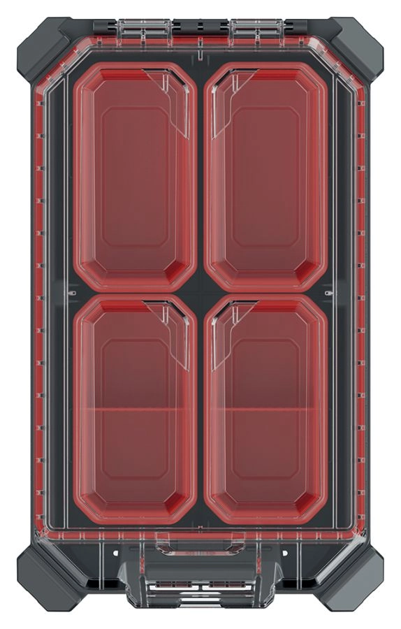 Organizér MSX je ideální volbou pro profesionály i domácí dílny. Přehledné uspořádání a pevná konstrukce chrání obsah při skladování i přepravě. Průhledné víko z odolného polykarbonátu zajišťuje rychlou vizuální kontrolu bez otevírání a kovové panty s pevným uzávěrem drží vše bezpečně na místě.