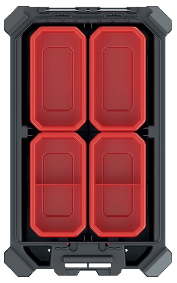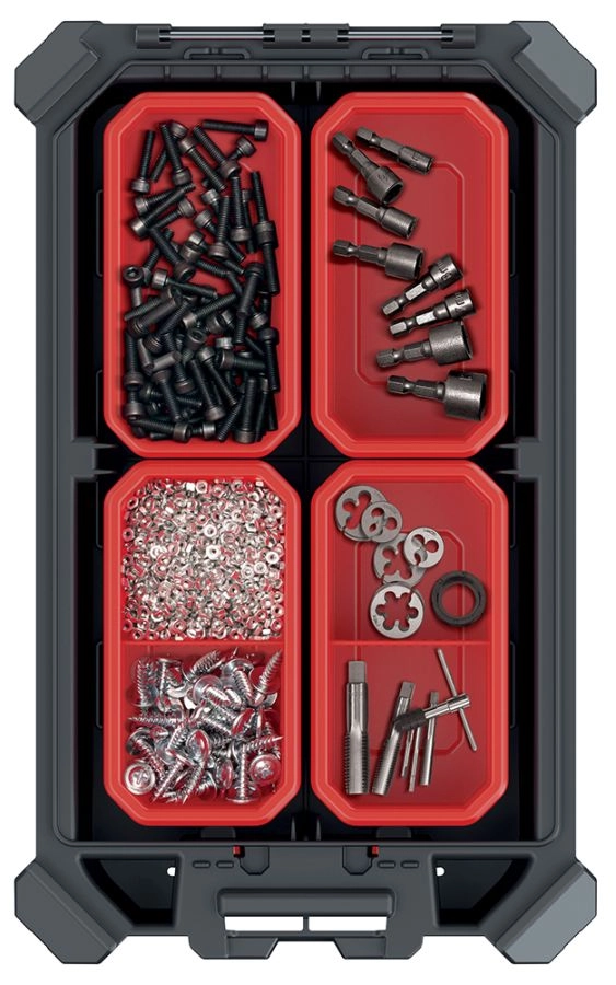 Součástí je modulární zámkový systém, díky kterému lze organizér snadno propojit s dalšími prvky série MSX. Těsnění proti prachu a vlhkosti udrží šroubky, bity, hmoždinky či drobné nářadí v suchu a čistotě – perfektní řešení pro servisní techniky, řemeslníky i hobby uživatele.