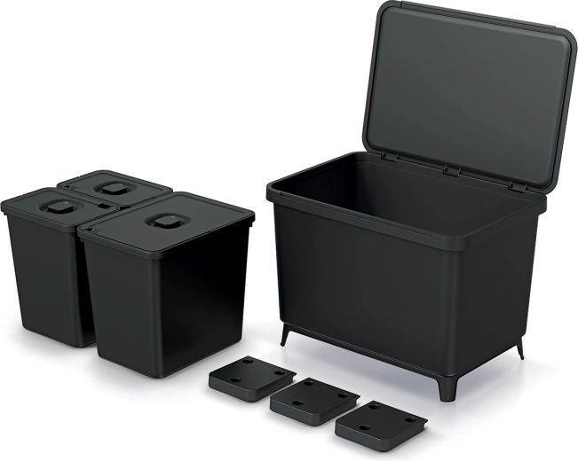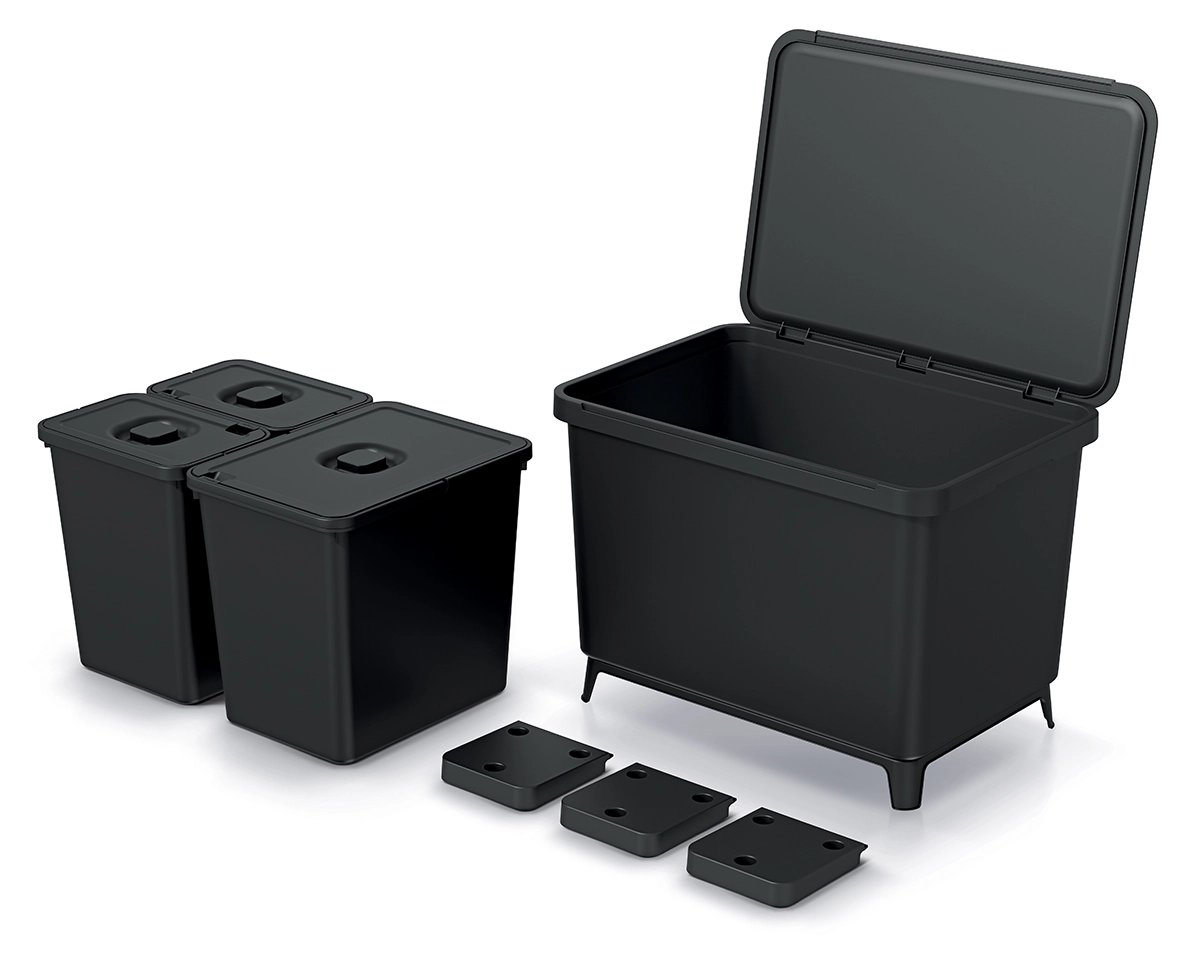 - Tři samostatné nádoby – 1× 23 l na směsný odpad a 2× 10 l na třídění.