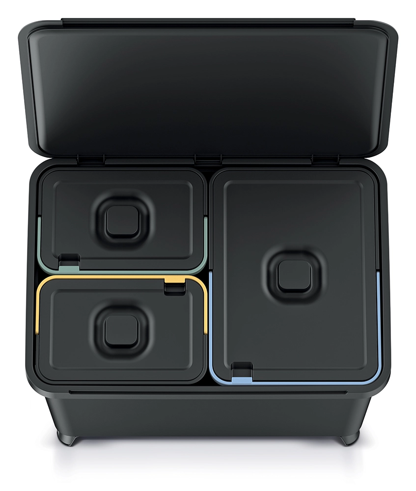 Koš SYSTEMA je navržen pro každodenní pohodlí i udržitelnost. Tři vnitřní nádoby s barevnými rámečky umožňují rychlé a přehledné třídění, zatímco uzavřené víko a robustní konstrukce udržují pořádek a čistotu. Díky kompaktním rozměrům skvěle zapadne do kuchyně, technické místnosti i kanceláře.