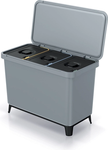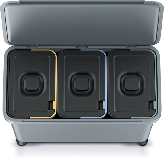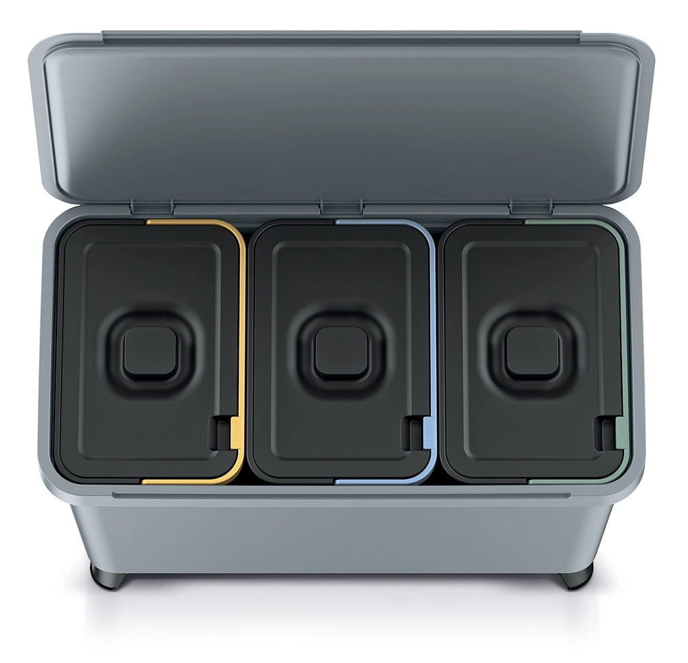 Udržujte pořádek a recyklujte efektivně díky třídicímu koši s celkovým objemem 30 litrů (3×10 l). Jednoduchý, moderní design ve světle šedé barvě snadno zapadne do každého interiéru, zatímco barevně rozlišená víka usnadňují správné třídění odpadu.