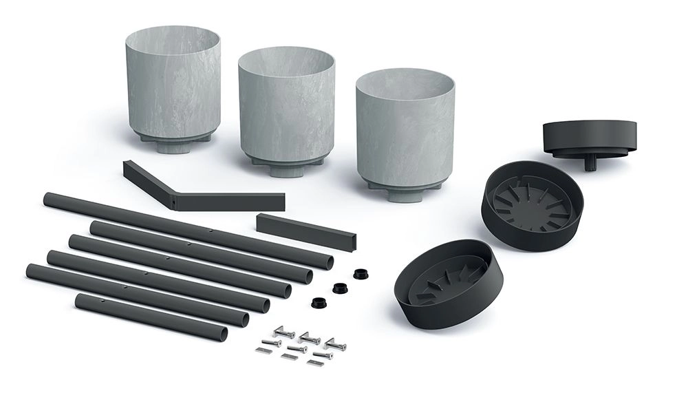Odolný plast se snadno udržuje, nerezne a je lehký na manipulaci. Stojan je dodáván v rozloženém stavu pro pohodlnou přepravu a jednoduchou montáž, takže jej rychle připravíte k použití doma, na balkoně nebo terase.