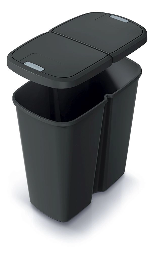 Otevírejte koš hygienicky a pohodlně. Dvě nezávislé části víka usnadní rychlý přístup k jednotlivým frakcím odpadu.