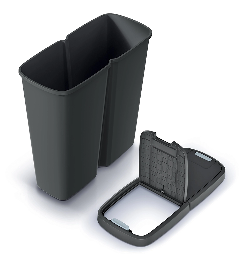 Odolné tělo z recyklovaného plastu je lehké na přenášení a snadno se čistí. Úzké, ale hluboké provedení s šířkou pouhých 24,5 cm šetří místo u kuchyňské linky, v kanceláři i na chodbě, zatímco objem 50 l zajistí dostatečnou kapacitu pro každodenní provoz.