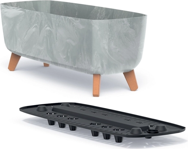 Stylový květináč s nožičkami Gracia Case v délce 39 cm vyniká moderním vzhledem, odolností a snadnou údržbou. Je vyroben z lehkého, ale pevného plastu s až 50% podílem recyklátu, takže je šetrný k přírodě. Díky zvýšené konstrukci na nohách zajišťuje lepší odvětrání a ochranu proti přemokření. UV odolnost a možnost vnitřního i venkovního použití z něj dělají praktickou volbu pro současné interiéry i terasy.