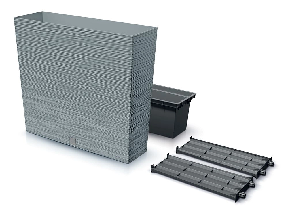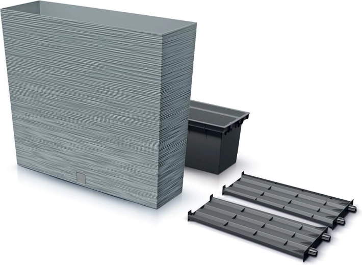 Díky kvalitnímu plastu s odolností vůči povětrnostním vlivům a UV záření je vhodný pro celoroční používání. Součástí je praktická vnitřní vložka, která urychlí výsadbu, udrží substrát na místě a zjednoduší zálivku i přesazování.