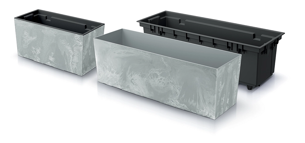 Díky přiložené černé vložce je výsadba i údržba rostlin výrazně jednodušší – zemina drží na místě a manipulace s truhlíkem je pohodlná. Materiál je odolný vůči UV záření a mrazu až do -32 °C, takže si vzhled i barvu uchová po dlouhou dobu.