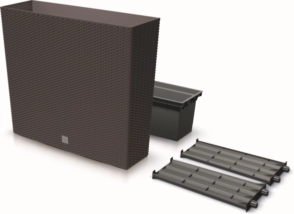 Truhlík je připraven k okamžitému použití díky integrované černé vložce, která zjednodušuje sázení i následnou péči. Materiál odolává UV záření i povětrnostním podmínkám, takže je vhodný pro celoroční použití.