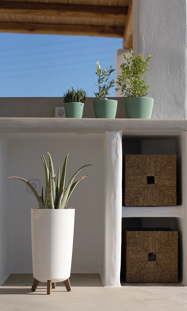 UV stabilní a odolný plast zvládne slunce i proměnlivé počasí, takže květináč bez obav využijete na balkoně či terase.