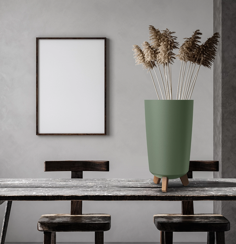 Elegantní antracitové provedení s nožkami v imitaci dřeva pozvedne vzhled každé rostliny a snadno zapadne do moderních interiérů.