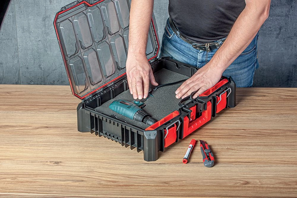 Vložka udrží nástroje přehledně uspořádané a chráněné před nárazy. Vhodná do kufrů a organizérů s více přihrádkami.